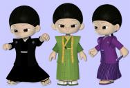 Part two of Gumdrops Abroad - Japan. The male costume. Kimono, montsuki (overcoat, which is meant to be stiff, so not suitable for extreme poses!), tabi (socks) Himo (overcoat fastening) and zori (sandals) and folded fans. One of the fans tucks into the kimono and there is a corresponding pose for the kimono. Includes a face morph for Gumdrop.