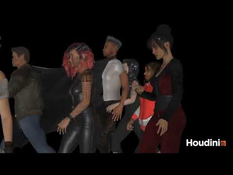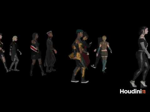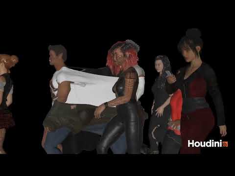 A lot of progress, but then I added a bunch of Vellum. Definitely need to prevent intersections between neighboring figures and any cloth, because some wild stuff is happening.