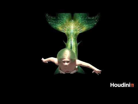 Made some slight tweaks to the animation, got a better handle on the hair and experimented with an underwater rendering style. I think there's a mismatch on the surface settings between her head and face, and I still don't really get how to get Karma renders to clean up without exploding the render time yet, but we're getting somewhere.