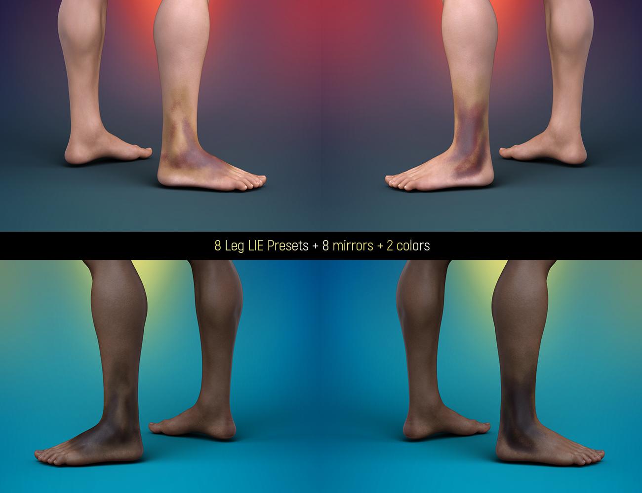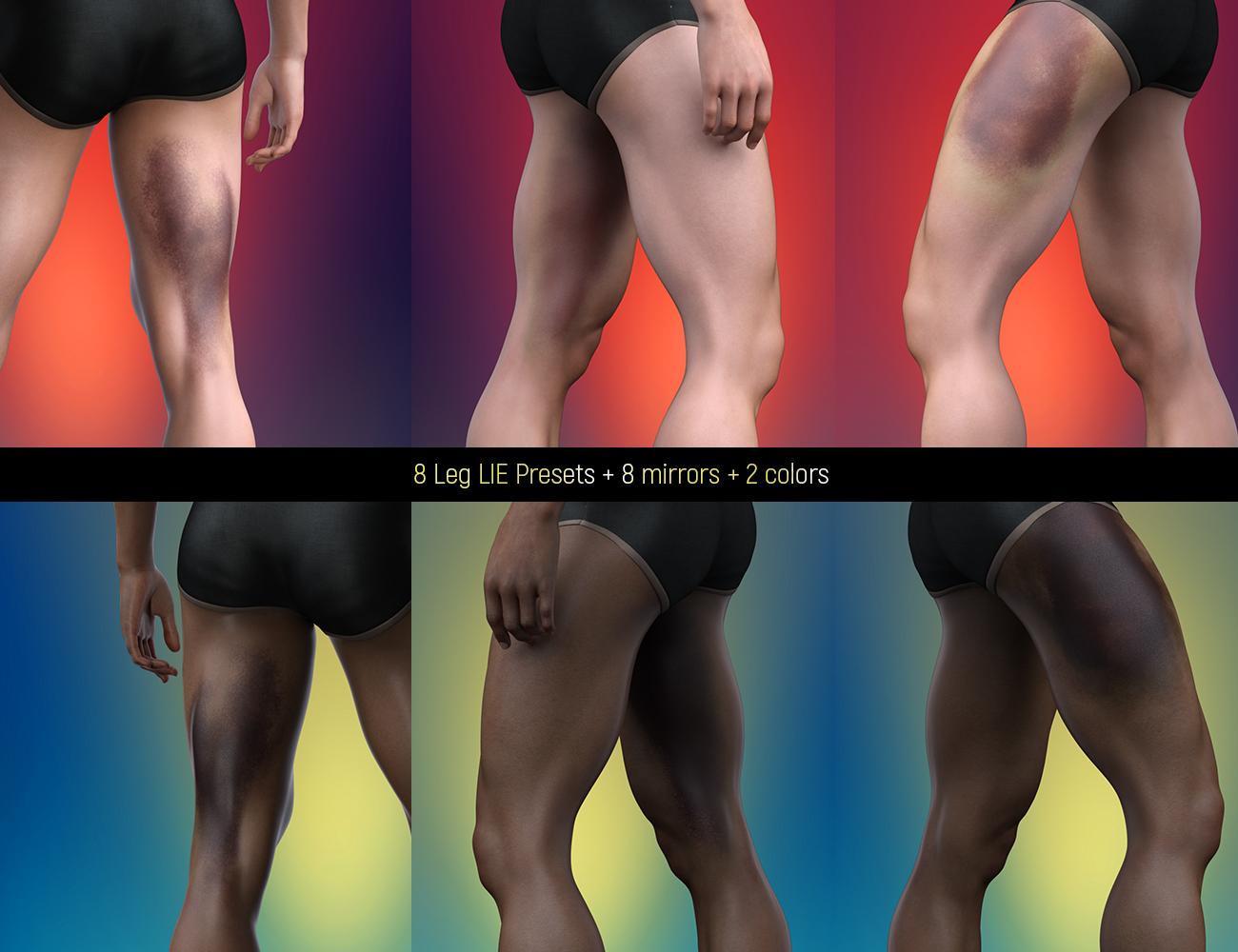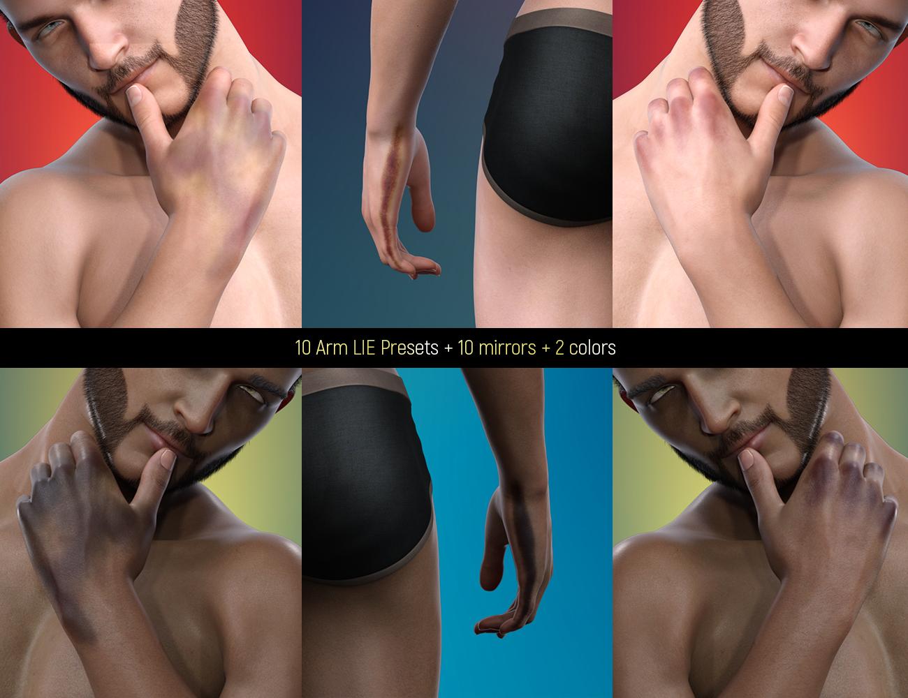 LIE Body Bruises for Genesis 3 and 8 Male(s) allows users to give their renders that extra dose of detail via 33 different hand-painted bruises. Also included is a mirror version for all of the presets, which gets you a total of 66 Presets per gender and generation.