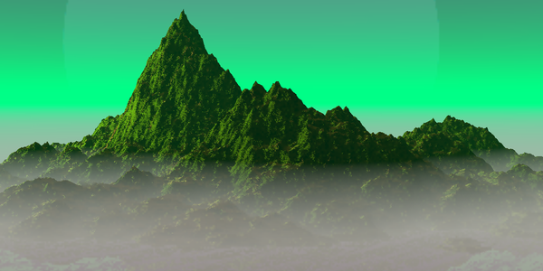 In the second "night time" version of this, I couldn't get a moon to show but it does have a kind of weird "arch" in the sky (which is cool), also there is fog around the base of the mountains on that one, which I think is awesome... The effects there were a surprise, I'm not sure what I did, lol. I have no clue how to make fog show in a daylight scene, though? Fog around the bottom of the mountain in the first image, would have helped with the realism, I'm sure...