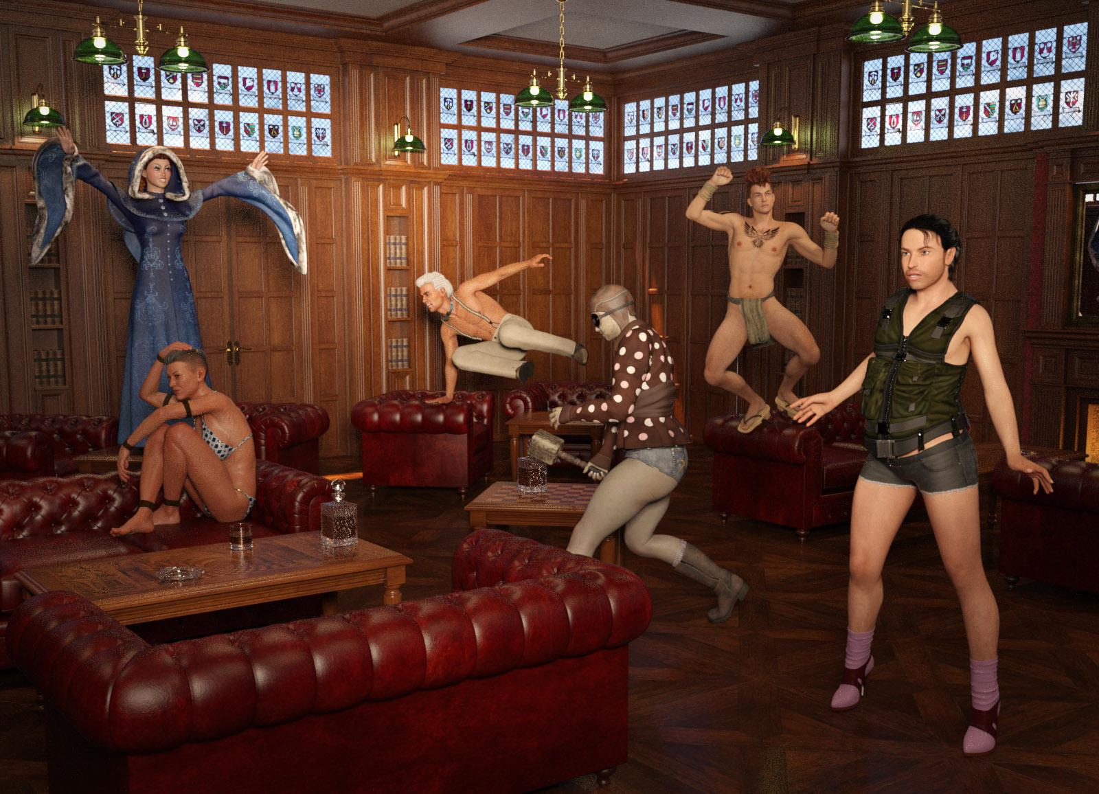 Featuring animals, plants and people of the Pleistocene epoch, Pleistocene Park was a favorite destination for the ladies of Harpywood, who felt it their duty to offer more attractive attire to the native Homo Erectus ladies.