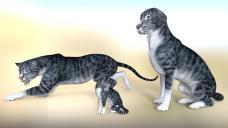 In the Product Library could be some templates for the big cat. The tabby material would have to be matched to those areas [in an image editor that works with layers], and then the new texture can be applied to the big cat using the Surface tab in D/S.