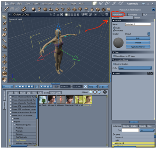 When loading daz figure into carrara, where is parameters?