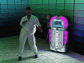 An employee of Mary's Bar and Grill, working on her own that night, stated that a heavy set man wearing sparkly white clothes and blue suede shoes entered the building and headed straight to the broken jukebox located in the back of the bar. Before she was able to warn the visitor that the jukebox was nonfunctional, it suddenly lit up and started to play the song, Jailhouse Rock. The stranger proceeded to sing and dance to the song. Afterwards, he left the building. Not a word was exchanged between the employee and the man. Total time of the encounter was approximately 5 minutes.