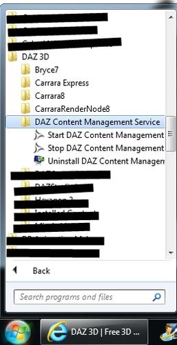 The easy way is to go to start...all programs...daz folder...and there is a start and stop content manager....see picture...hope this helps...Trish