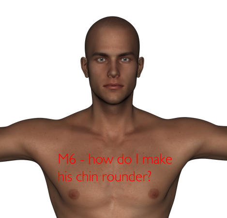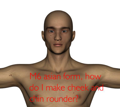 I've a problem with my M6 figures. They all seem to have this razor-shape chin and protruding cheek bones, and I've been trying hard both to give him a bit more squarey and a bit more rounded shape, but to little avail. I like him to look a bit more like the M5 kind. The third guy is the default settings of an Asian character I bought a while back, and I really want to fix this cheek'n'chin give him a bit more rounded, fleshed-out face, but it just doesn't seem doable. Or am I missing something? Please help me out!
