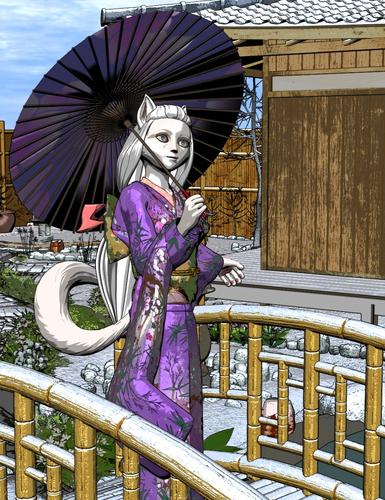 Another "pretty" render from me... this one uses Draagonstorm's "Let It Snow" shader. I did hide parts of Merlin's Teagarden as well, but for the most part, the surfaces are unedited. Two lights, a main "sun" light and a 25% fill light.