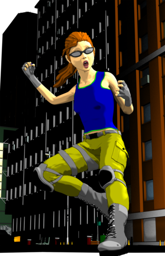 LOVING the cell-shaded look. Did you really just use solid diffuse colors on the objects? What about the skin? *prepares notepad and waits eagerly*