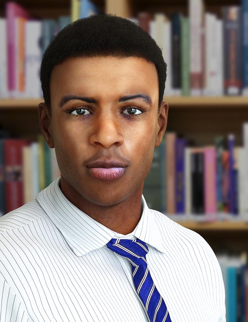 Honor Student (DeShawn, Redz Real Curly Hair, H&C Business Suit B and Painter's Lights plus one of the HDR environment images that comes with Poser)