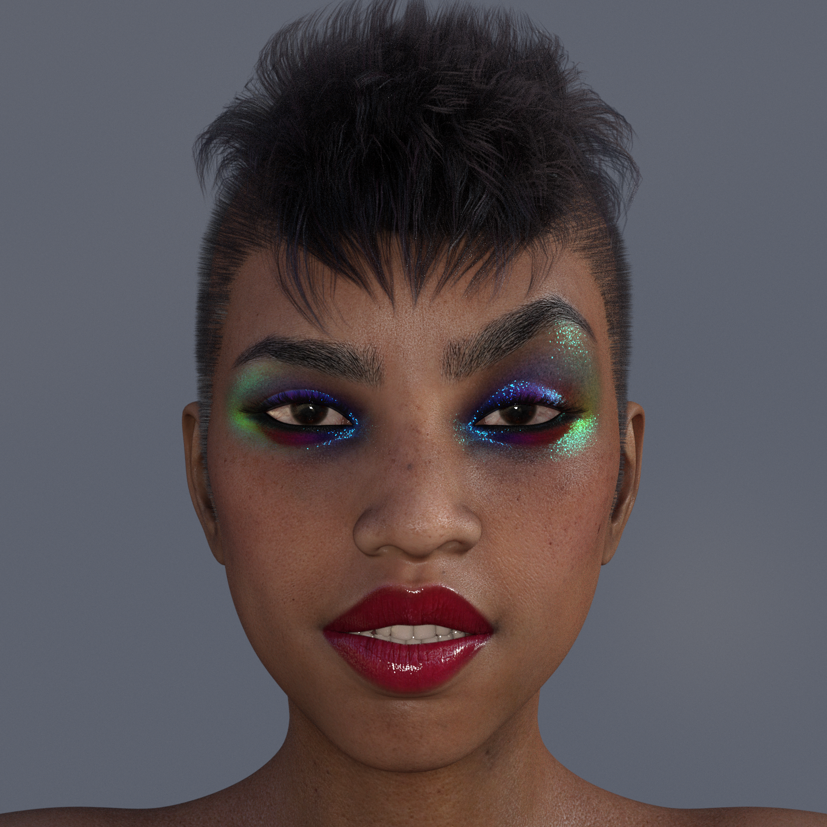 Trying out the PBRSkin shader and post-work techniques with PaintShop Pro .  I'm very shy about posting my artwork, mostly because I'm my own biggest critic.  I see so many wonderful artists here and hope to one day be just as good.  So many of you are inspiring and your work takes my breath away!