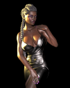 Base skin is FWSA Kheiron, who was a Centaur 7-era guy. (Makeup choice from Kheiron is my nod to Killmonger's scarification.) This is Genesis 3. The Kheiron skin has a better translucency map than other Genesis 3 maps, but it's just a duplicate of the Diffuse. I made a new set of trans maps to create more interesting skin effects.