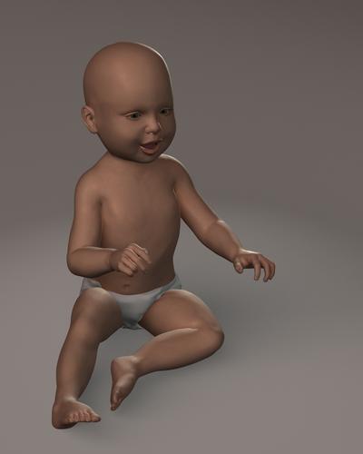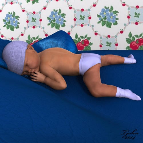 That looks pretty good Tjohn. Many infant images tend to look too much like a one or two year old shrunken down... I think the tummy pose with the legs posed the way they are is good too... very new infants tend to have a "frog legs" thing going on... There is something about the undeveloped hips that makes then default to position and I think that tends to get ignored a lot. Also the SSS adds a lot to the suggestion of "new born"... Newborns tend to have more translucence and blotchiness going on in their first few weeks and in that scene the skin looks right.