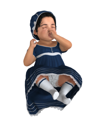 I did this one with Genesis child moved to Genesis 2 Female, then used a bunch of Growing Up and other morphs to age her down, so to speak. I guess she's maybe supposed to be a couple months old in that image? Not really sure, since I'm not great at judging ages (and you can't really see her face anyway). Her size is a bit deceptive, since the guy holding her is based on Gianni 6, so he's got a lot of arm to work with. Also, it turned out that the mesh on her legs was not at all happy with the size reduction and crumpled on her shins, so it's a good thing she's wearing long clothes.