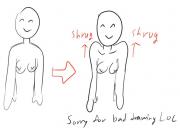 Is it impossible to shrug her shoulder while get her arms sticked on her sides? Or am I just ignorant about how to do this?