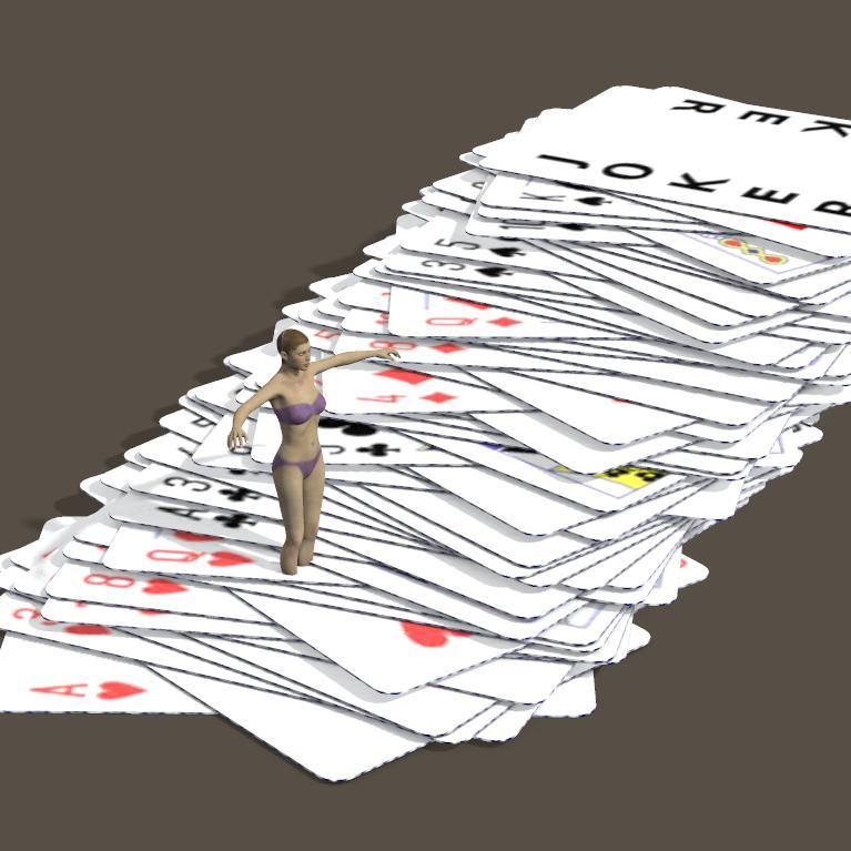 I haven't really started thinking about any morphs other than those for "54-card pickup" (i.e. the whole deck chucked into the air). I have a feeling it may be better to create separate props (using the same basic single card mesh and texture image) for hands, piles of cards,etc.