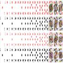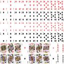 Firstly I want the faces of all 52 cards (or 54 if you include jokers) on a single image. So I found a public domain image of the faces of a full standard English deck on Wikipedia and used it to create texture maps for decks with/without jokers. 1024x1024 75% JPG versions of both attached - use them as you want.