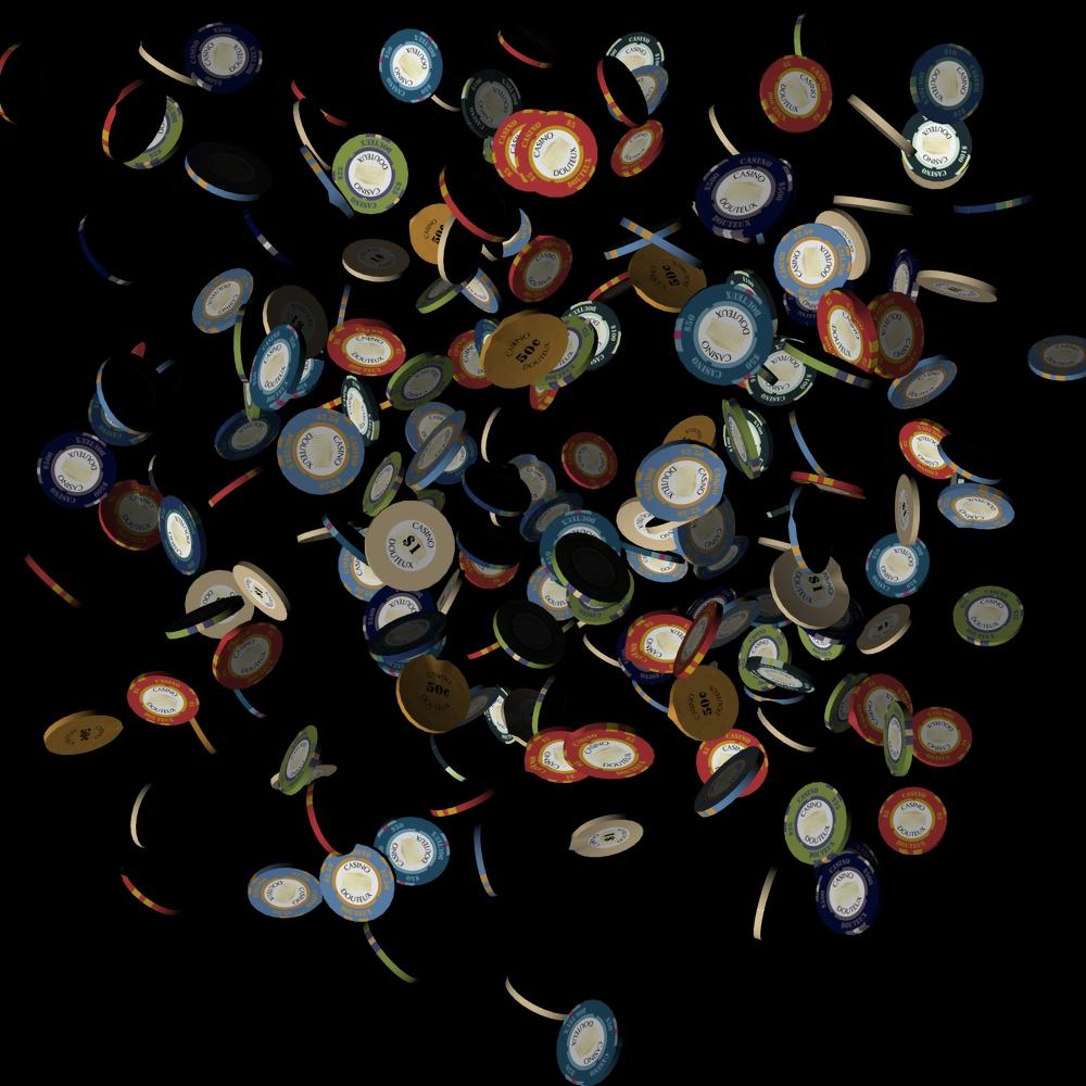 Anyway, I now have my first pre-release of the 54 casino chips flung in the air prop almost* ready. It's currently in Poser prop version only, but it imports (almost**) without a problem into DAZ Studio 4.11. I've also created $2.50, $10, $50 and $500 Casino Douteux textures, the last three using arbitrary (and not particularly good) colour choices on my part. Four different textures are used by the prop, so you can mix and match the chip values you want.