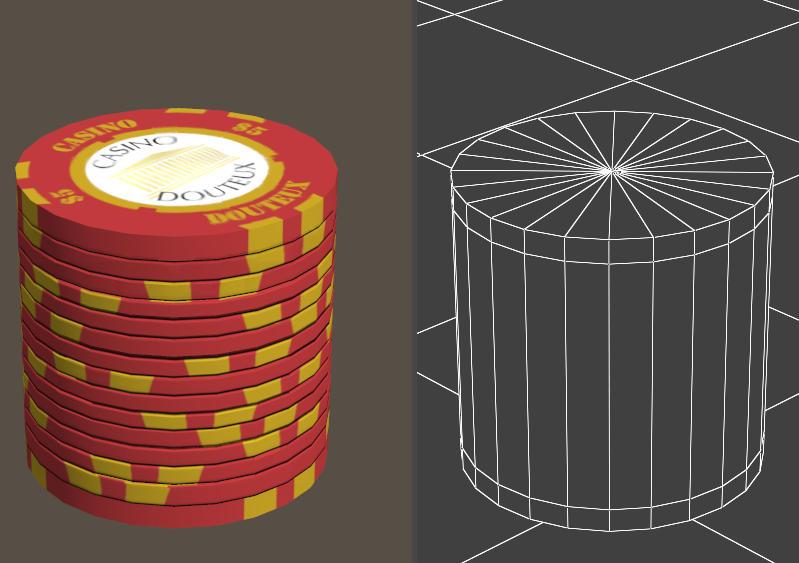 - a simple 24 vertex cylinder based mesh for the 50 chip prop. Good enough for anything that's not really a focal point of the image. Poser smoothing & DS/Poser inbuilt SubD won't work nicely with this.