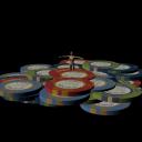 I've attached the texture images that I used for the chips. I created the basic design in GIMP using solid-colour layers with masks, which makes it easy to change colours. I'll probably do a few different chip designs based on googled photos (as I've said before this set is loosely based on the Casino De Montreal)and include the XCF/PSD. (Edit (16.45 UTC Mon 23 Dec): I've added a screenshot tothis post,showing the relevant bits of my GIMP workspace with the masked solid colour layers just in case what I said didn't make sense. I also noticed that oneor two of the chips I've seenphotos of have edge markings that I can't do with the simple top view 'Project from view' UV mappimng I've used for the edges)