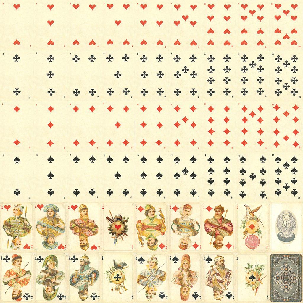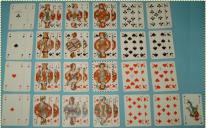 (Note: the deck is a French deck, but with German letters on the face cards B, D, K(onig) as opposed to V, D, R(oi) - Wikipedia's French-suited playing cards page says they're 'North-German pattern, which are usually 32 or 36 card decks, and where 52 card decks have either 3 or 6 (additional to the 52?) jokers. Half the fun of doing something like this is the stuff I learn along the way ! My favourite so far on playing cards is the relationship between Bowers and Jokers on the WOPC Bicycle Playing Cards 1st Edition page