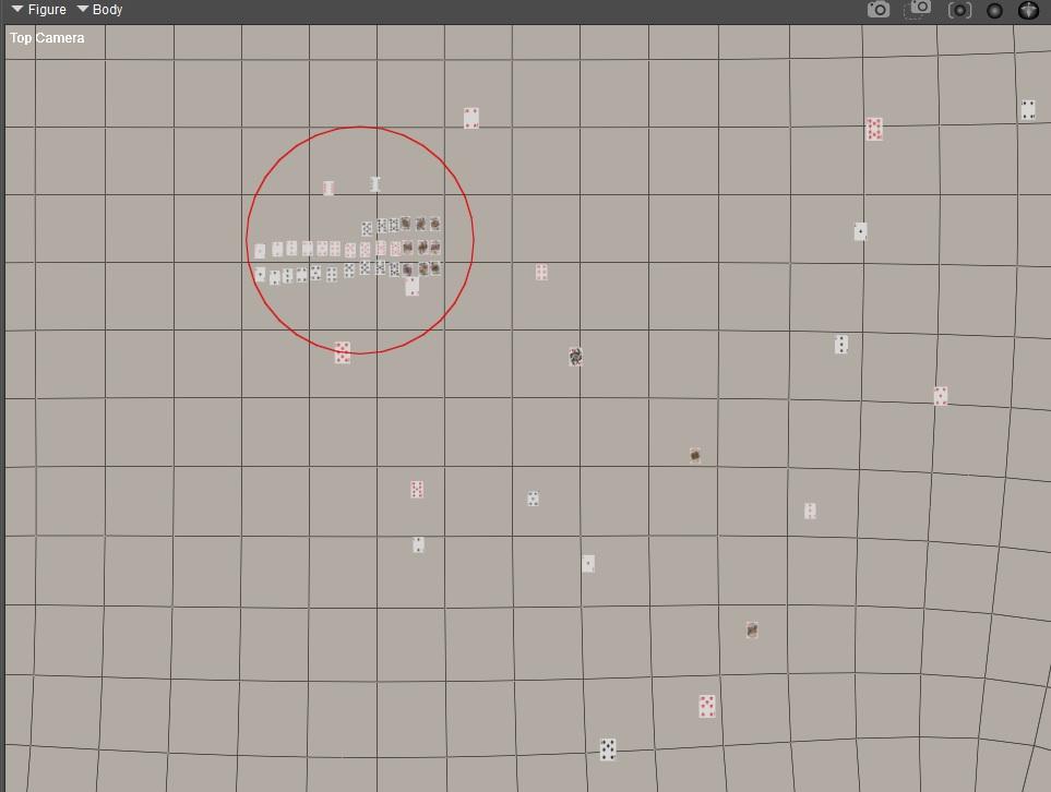 I'm fairly certain that creating a figure for 54 playing cards, spheres, cubes, whatever will simply be a case of changing the geometry file name (two places) in the CR2, and ensuring that the mesh is correctly grouped into 'Scatter_01' to 'Scatter_54'.