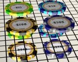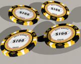 I've also attached the zipped and tidied up XCF plus a zipped exported PSD version in case anybody doesn't like my colour choices. They're set up for the $10,000 chip, but it's easy to change the colours and value. The fonts used are Vladimir Script and Bernard MT Condensed, so if you don't have those I assume that GIMP/Photoshop will pick the closest you do have. Several layers include the word '(HIDE)' - these are the ones you don't want visible when you export a texture (most of them were for creating the curved text, and I decided to leave them in.