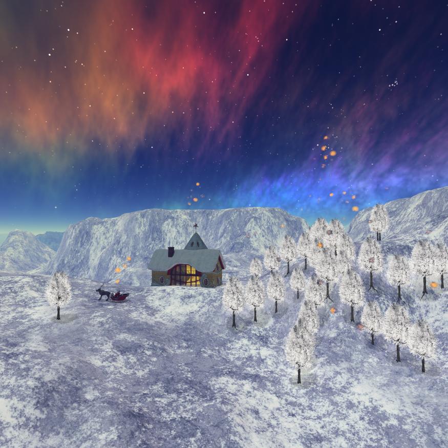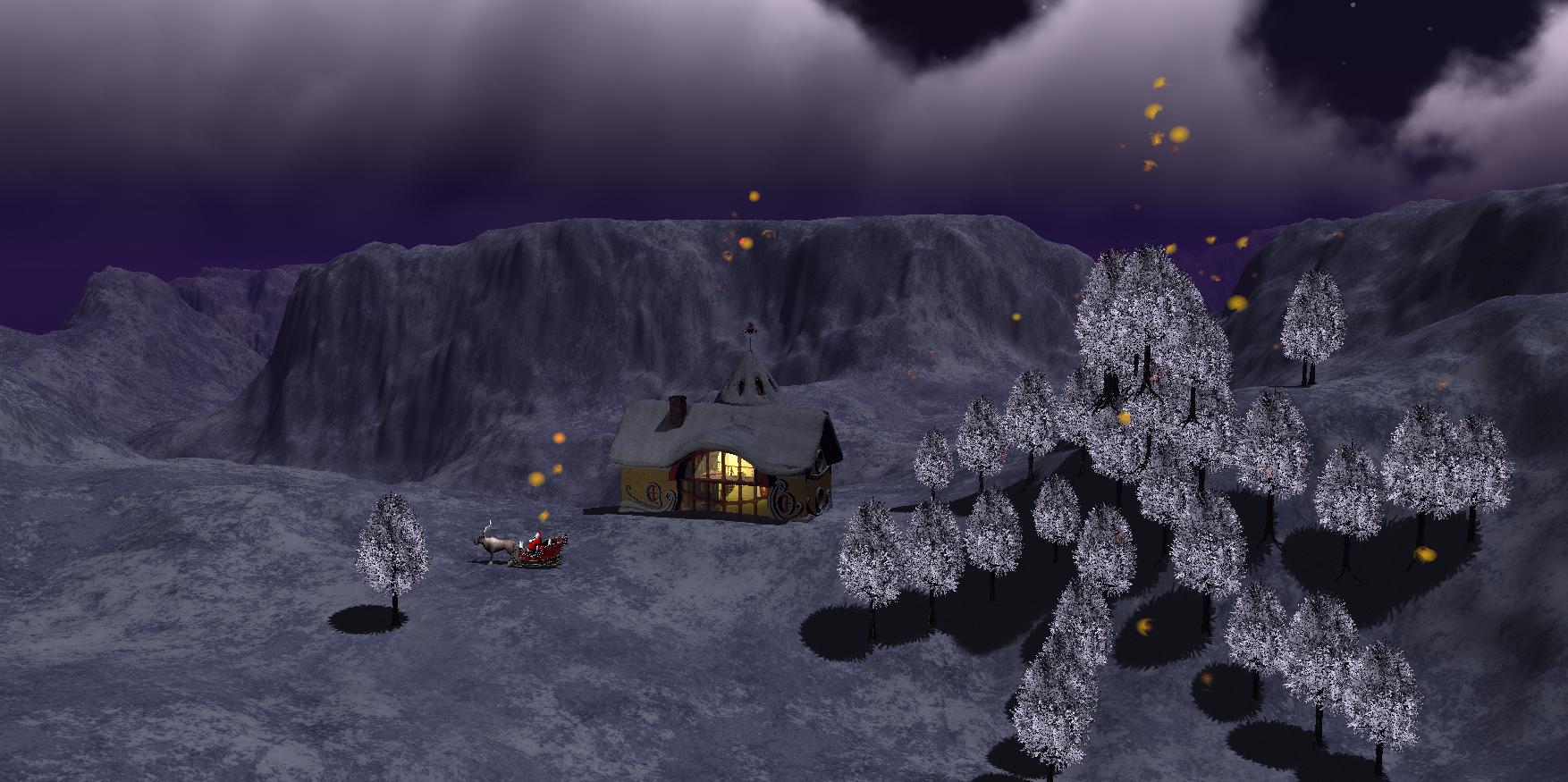 Horo, adbc and Yellow Pen: Thank you. Nevertheless, I made a new version. I dropped the volumetric cloud slab and changed the lighting very much. I now use a HDRI enhanced sky by Horo, but modified it substantially to bring out the colours more. The idea was to make it more magical with knd of Northern light (but then in different colours). I also wanted a bit more light in general in the scene. I deleted the lights that were used to specifically put light on the house and the Santa and also the fill light. I started using only IBL, but that led to no shadows (due to too even light in the sky). Therefore, I played with combinations of IBL and sun to get this result. I also deleted a number of trees that were stacked on other trees (which I had not noticed before).