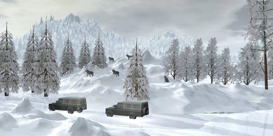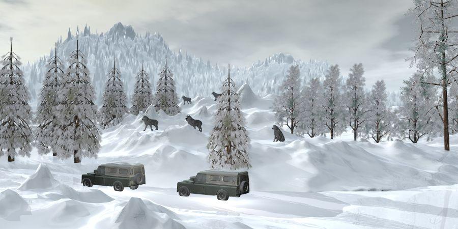 adbc: Wolves are much better size now. And regarding the snow: if there is no bump in the texture, increasing the bump value will not help. Maybe that is the issue? Maybe modify the snow texture to include more bump, or choose a bumpier starting point or: just keep it as it is now, cause it is a great render!