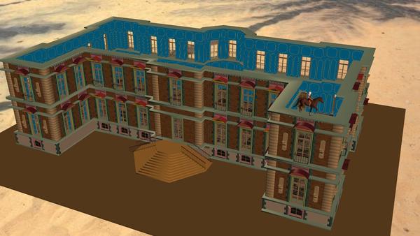 i was not really planning to model the grounds but maybe i will include a sky / panorama dome