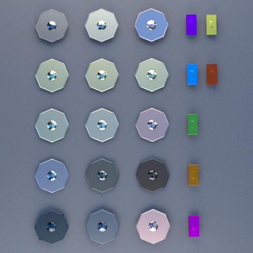 The rectangular bars on the right are a set of 'anodized' aluminum files made by patro, on the Luxrender forums.
