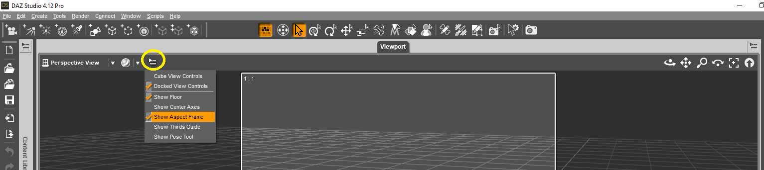 Toggle visibility via the drop-down menu options on the set of lines in the upper right corner of the Viewport.