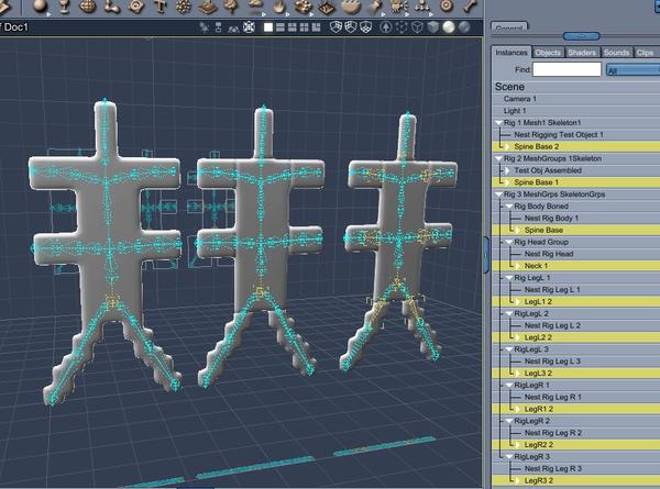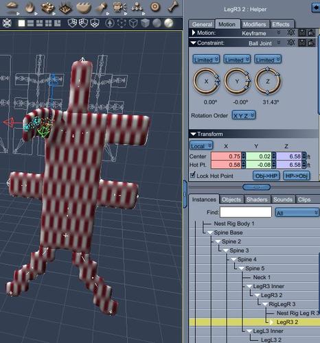 We had been discussing the possibility of nesting bone rigs and joint constraints within larger groups. My issue was that I had a figure with a wide-flat torso. I wanted the shoulder to move like a robot where the arm issued from the card, but I wanted to preserve the ability of the torso to bend and twist at the waist, and I wanted to preserve the ability of the arm's elbow and wrist to bend naturally (similar issues with thighs/knees/ankles). Although the task at hand was completed, I was wondering if there was a faster and easier way to get the result I wanted. My thought is nested rigging for complex machines that have both robotic parts and more fluid belts and hoses.