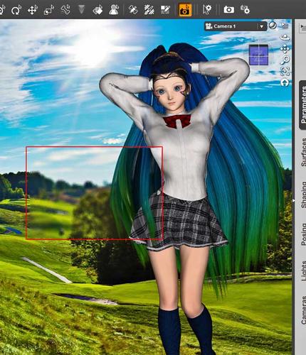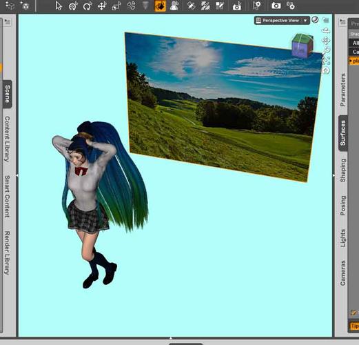 Now, in the scene tab, select Camera 1, but in the viewport select Perspective view,-