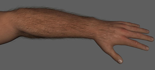 Forearm hair and knuckles. Knuckles are separate and can be turned off.