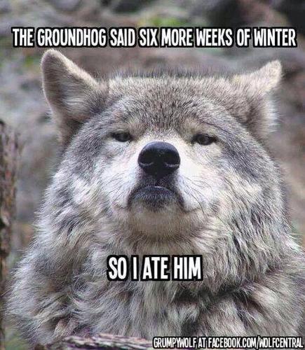 You can tell the wolf from me that he can have as many groundhogs as he wants...and take my share, too. I've eaten groundhog and didn't care for it one bit...and no, I'm not going to tell the story behind that one.