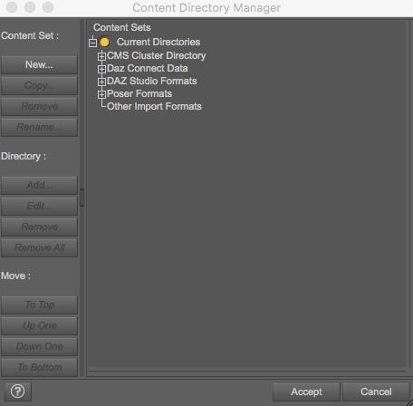 Is this Valentina? I find i get that on my mac after a crash; have you never been able to see your smart content? I would check in DIM if the CMS is howing as downladed first (see attached). Next check in Daz Studio's Content Manager to see if everything is properly configured (see attached). For all this to work, you have to have a working PostGreSQL CMS (the database manager), a proper content folder with a Data folder, runtime tec... and finally, there should be a Daz 3d folder in your Shared User account on your Mac that contains the Install Manager> Manifest Files and the files that tells Smart Content what is smart content... make sure that that isn't empty.