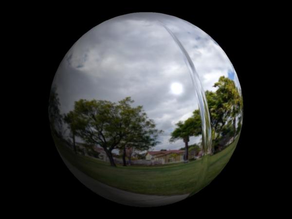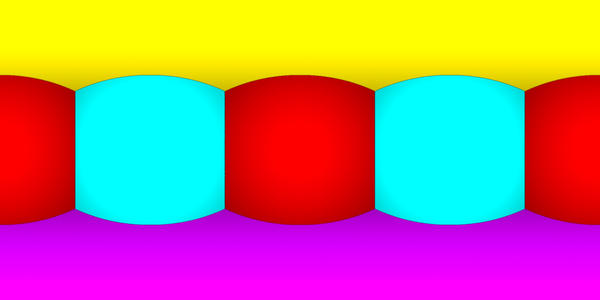 Rotation of the included environment sphere seems to be off by about 10 degrees on the Y axies but all other rotation seems more or less right to me (maybe 5 degrees on X or Z since there seems to be more yellow from the top coming through on one side). The issue I am having is that it appears to be ignoring parts of the IBL, it is only producing red coloration from one side and completely ignoring it on the other. I'm making a guess but I have a sphere mapped with one of my backgrounds to show what I think is happening, the result here comes from the spherical UV map not properly tiling causing a gap at the seams. If it is doing something like this, to me it would explain why the red portion that does show up in my render is much smaller than the coverage from other colors (which cover the same area in my map). Were the gap in mapping big enough it would completely miss one of the red sides which would make sense with these renders too, it's like the UV of UberEnv is only covering 60-70 degrees instead of 180 (or something like 160 considering it may be getting a sliver of red on the opposite side but not enough to make pronounced coloring but that should be making the coverage from the other red side larger).