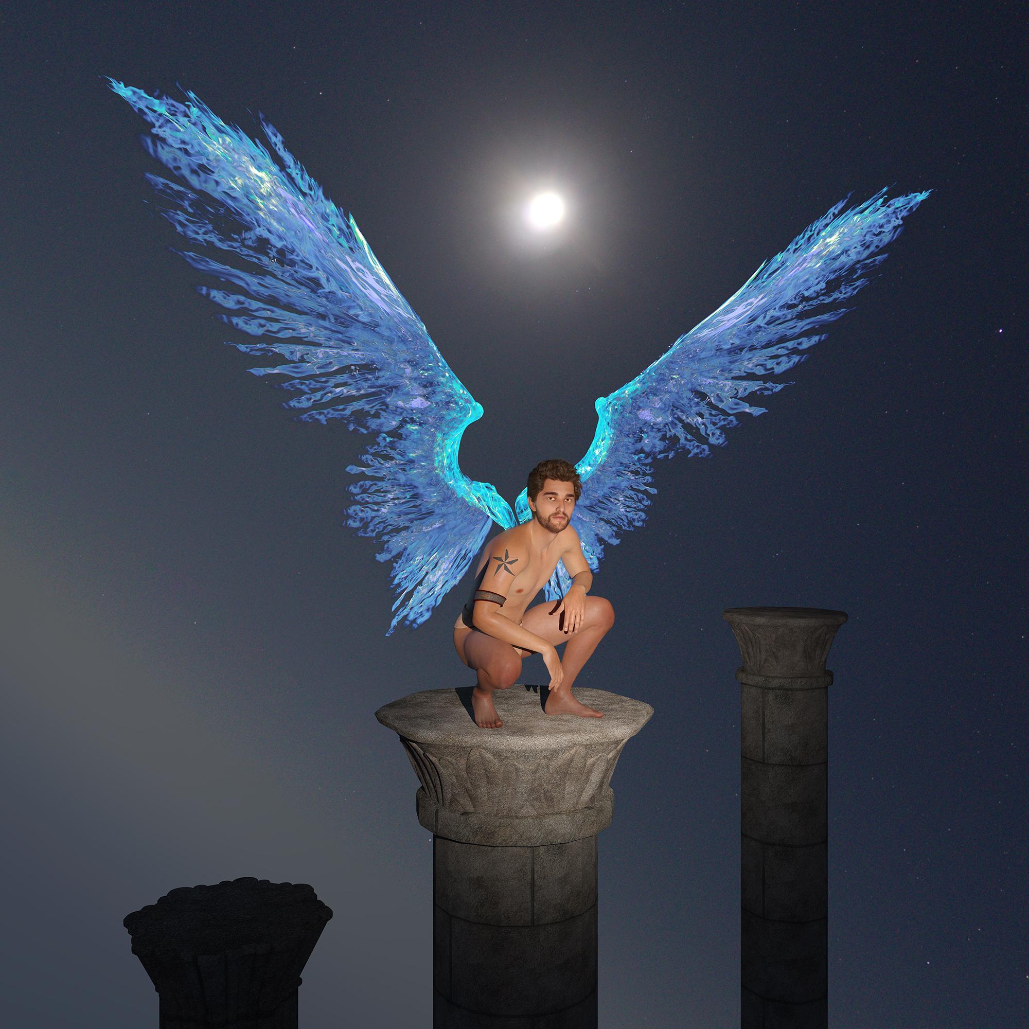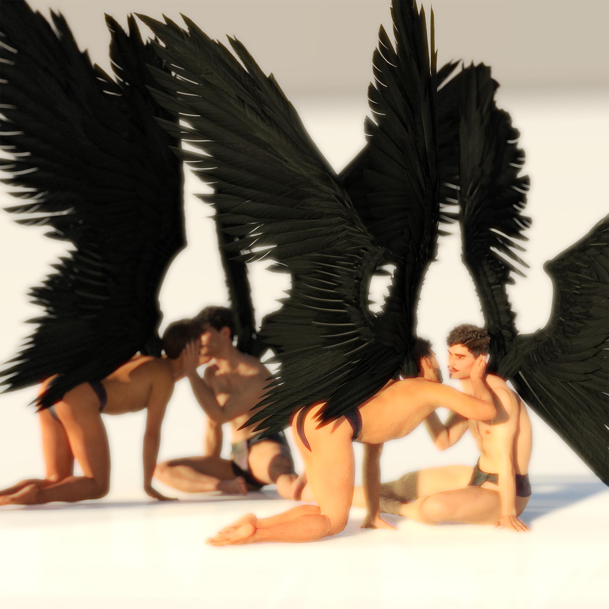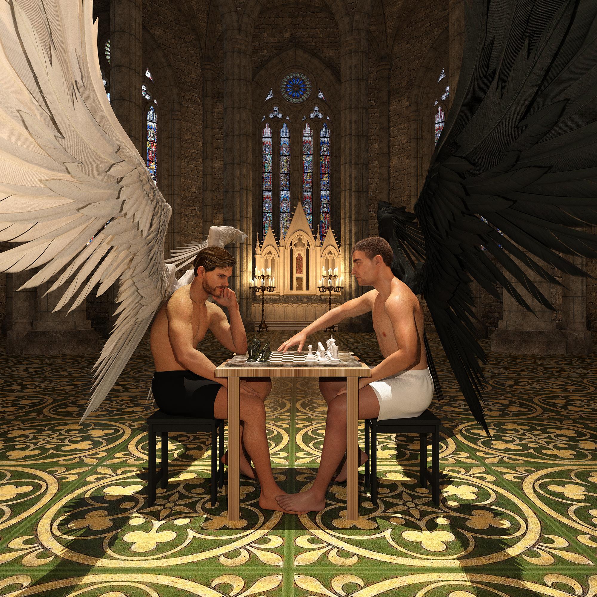 Don't really understand why the winged dude is lookig into the camera... I feel he should be either looking down at the other dude or up towards the light.