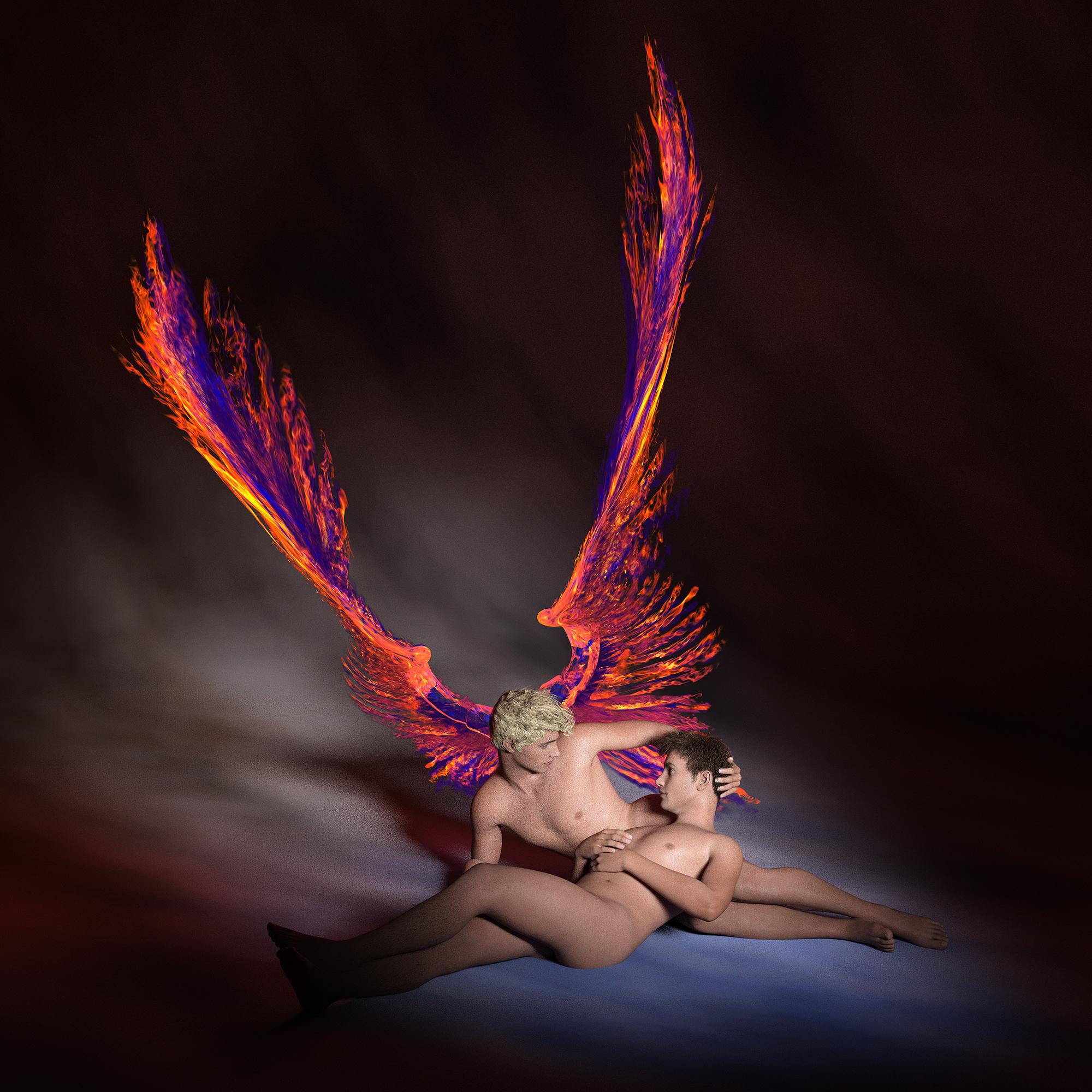 Thanks for the like on the lighting and shadows Hylas, I originally had the angel looking up but I changed it. My reasoning was having him look at the camera involves the viewer in the "captivity" also. The viewer becomes the captor, jailer or an active observer of this captivity, the angel is aware of the viewer. Also, the angel is not struggling too hard to get away, I did not put anguish poses on their faces. The angel is a semi-willing slave to love and is not afraid to show it. The look into the camera is defiance and self-love. :)