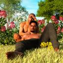This is Armando (front) and James (back) and they are posing in a picture I have titled, "Bloom".