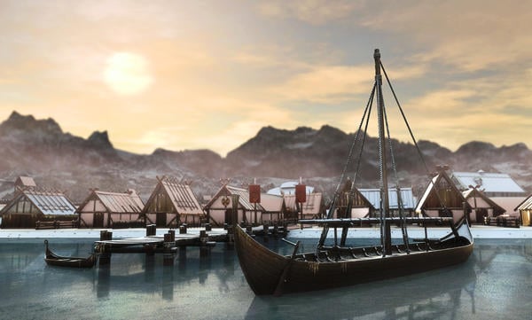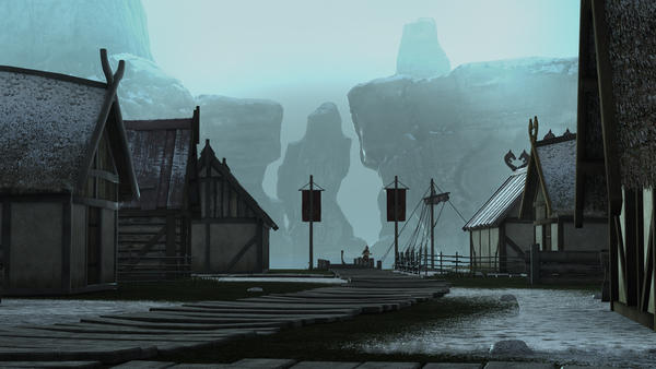 A further progression of my previous image. The Let It Snow Shader is one of those one-trick ponies I rarely have an opportunity to use, but when I do find a use for it, it always delivers. Can't decide if the tiny added viking figure helps or detracts...