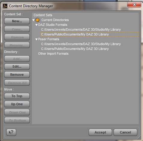 Here is what that looks like. From what you said (and ty for your reply btw) It appears to be correct, but still not loading them. This is really frustrating. I mean, you would expect a software to just work, not to have to go digging around to get anything to load. Im so confused, and not very good with this kinda stuff, Im sorry. I still have no clue how to fix it, and Iv been at it for 2 days now. :( I did have an older version of Daz installed about a year ago (that I removed), IDK if that could be messing with things? Or what?