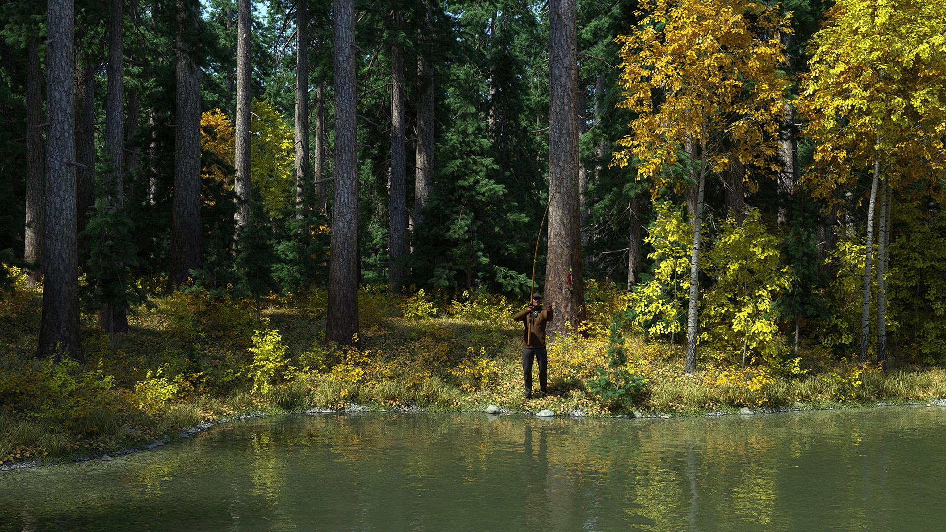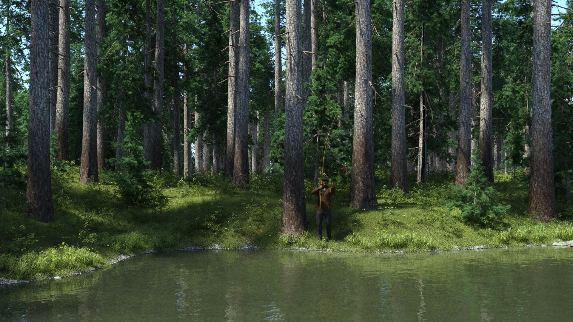 I rerendered the fishing scene with Pines 1 and Pines 2, to see how the different ecologies affected the scene.
