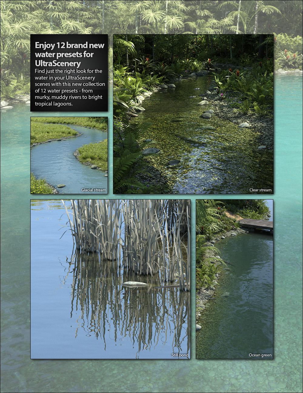 This is my upcoming or in-progress work for UltraScenery. A set of water presets, Landscape Features vol 2 and a bunch of Australian bushland ecologies. None will have depencies on any already in-store products (excepting the base UltraScenery of course)