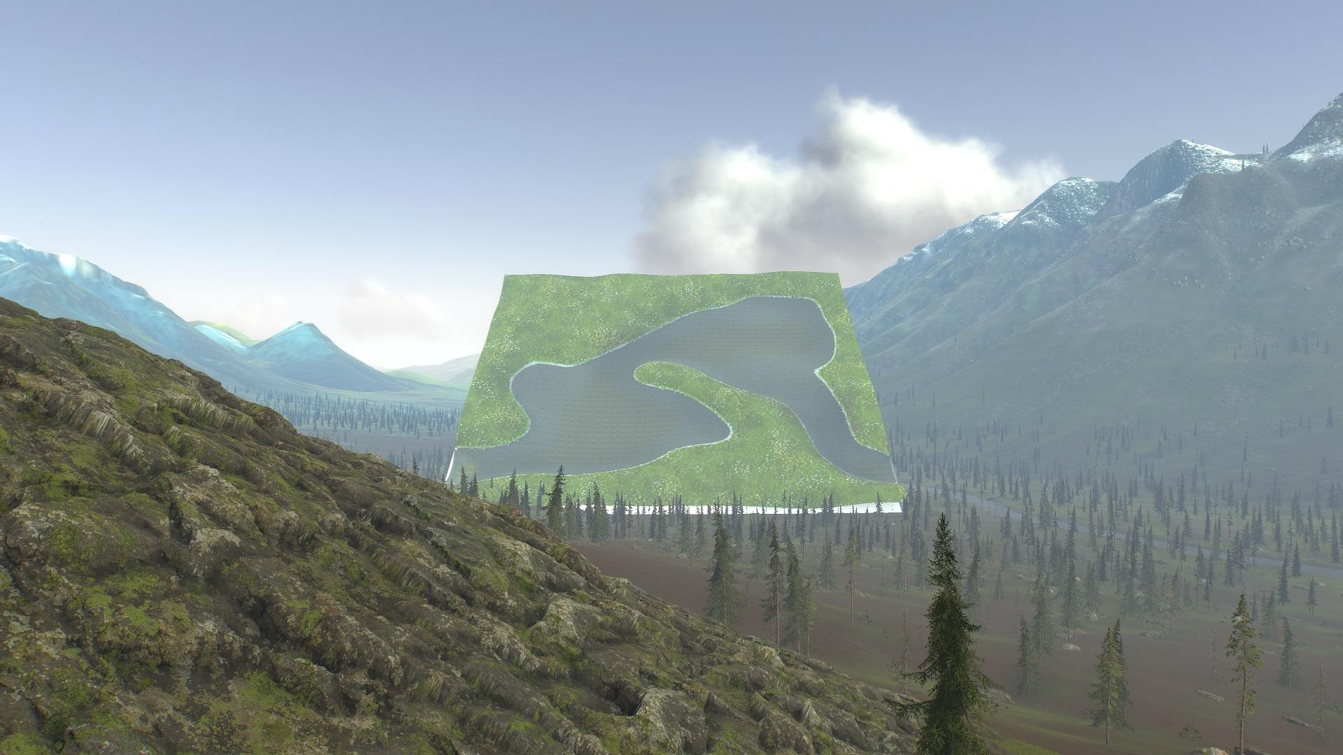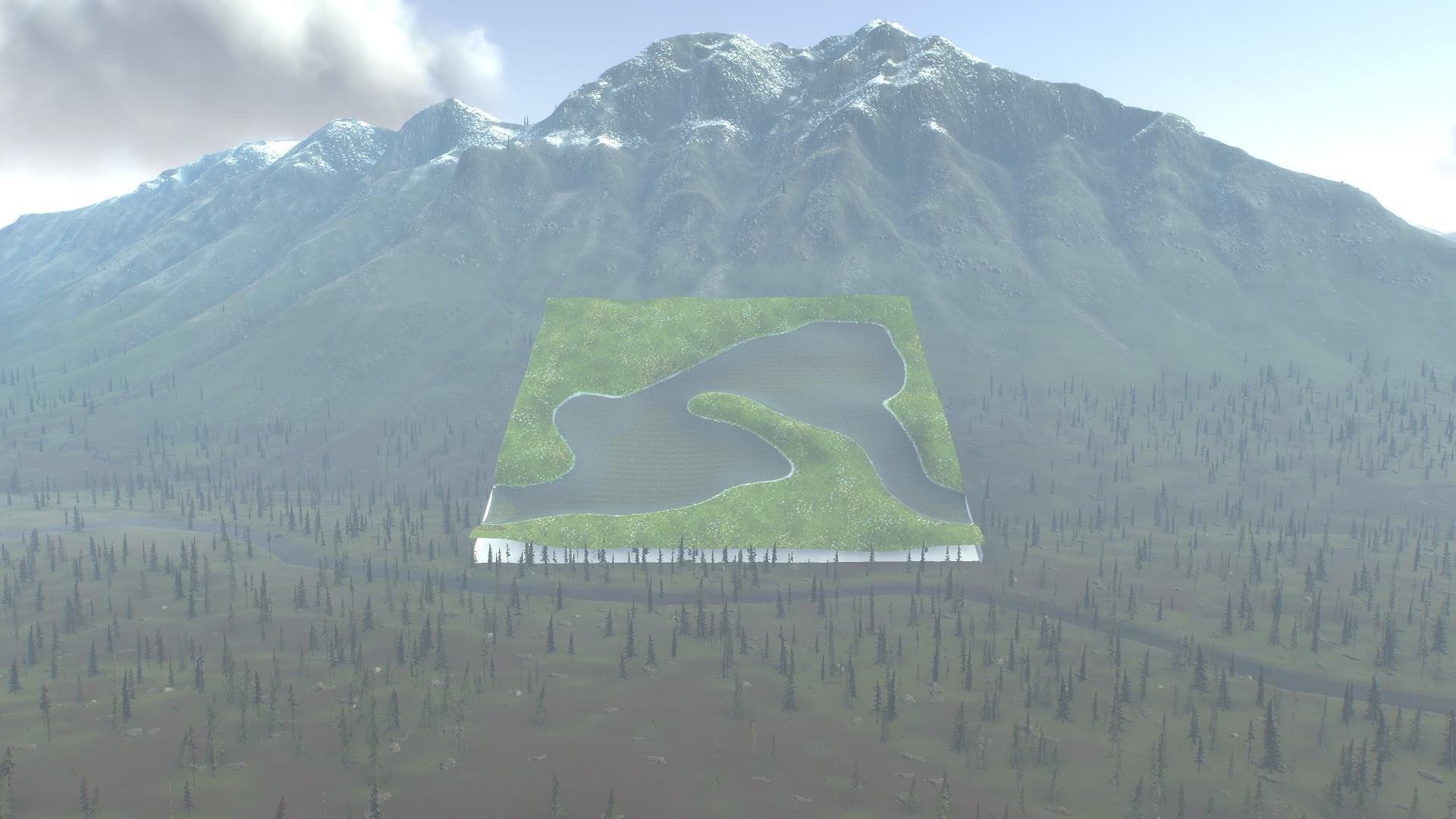 To see the scale of the Unity terrain and Lake 3 UltraScenery (64 m by 64 m), I have taken a snapshot 10.5 km away from Lake 3 object.