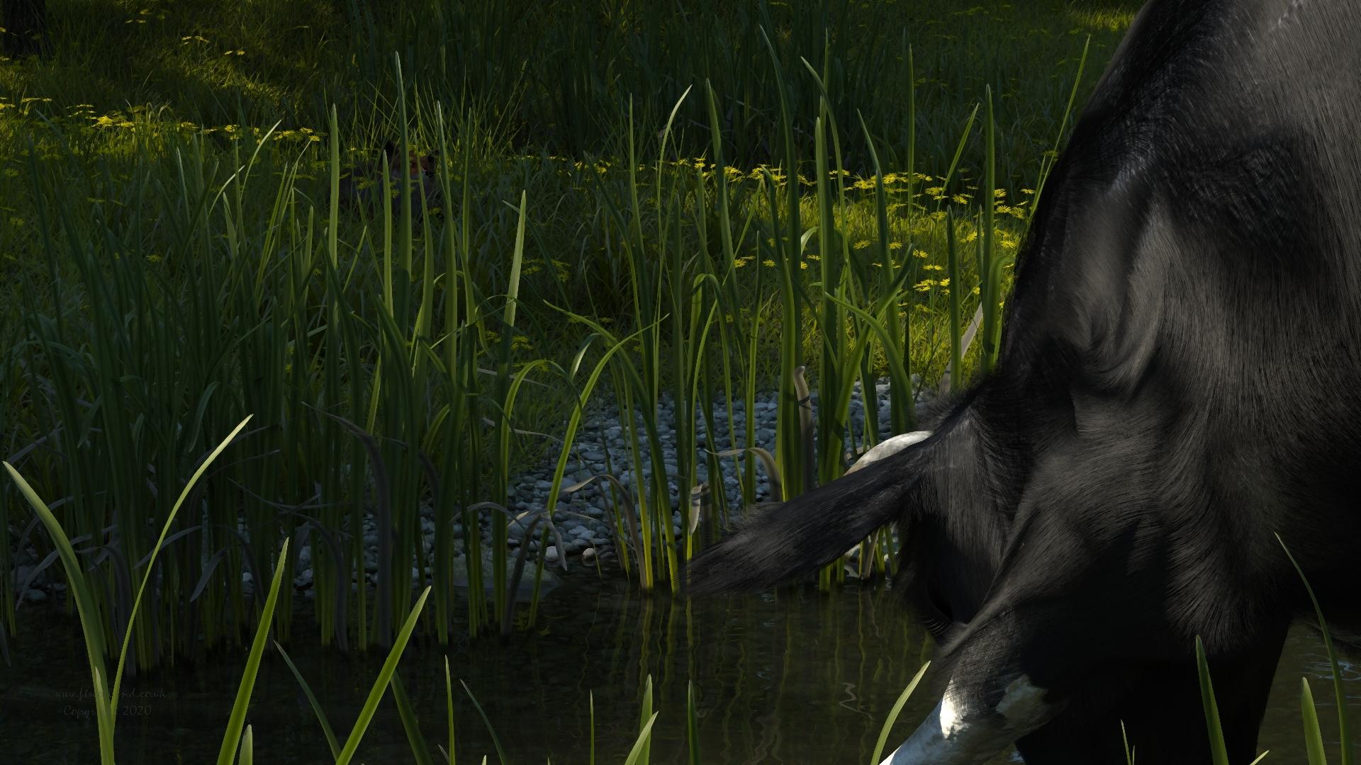 Another UltraScenery render. I used the Catalyzer Red Fox and I created some Strand Based Hair for the cow.