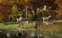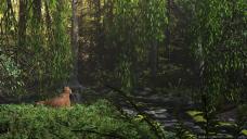 I finally managed to get my own "Deer plus Landscape" done, my computer corrupted my first one before I could render it. So here's a nice autumn piece using oaks and elms, if I remember correctly.