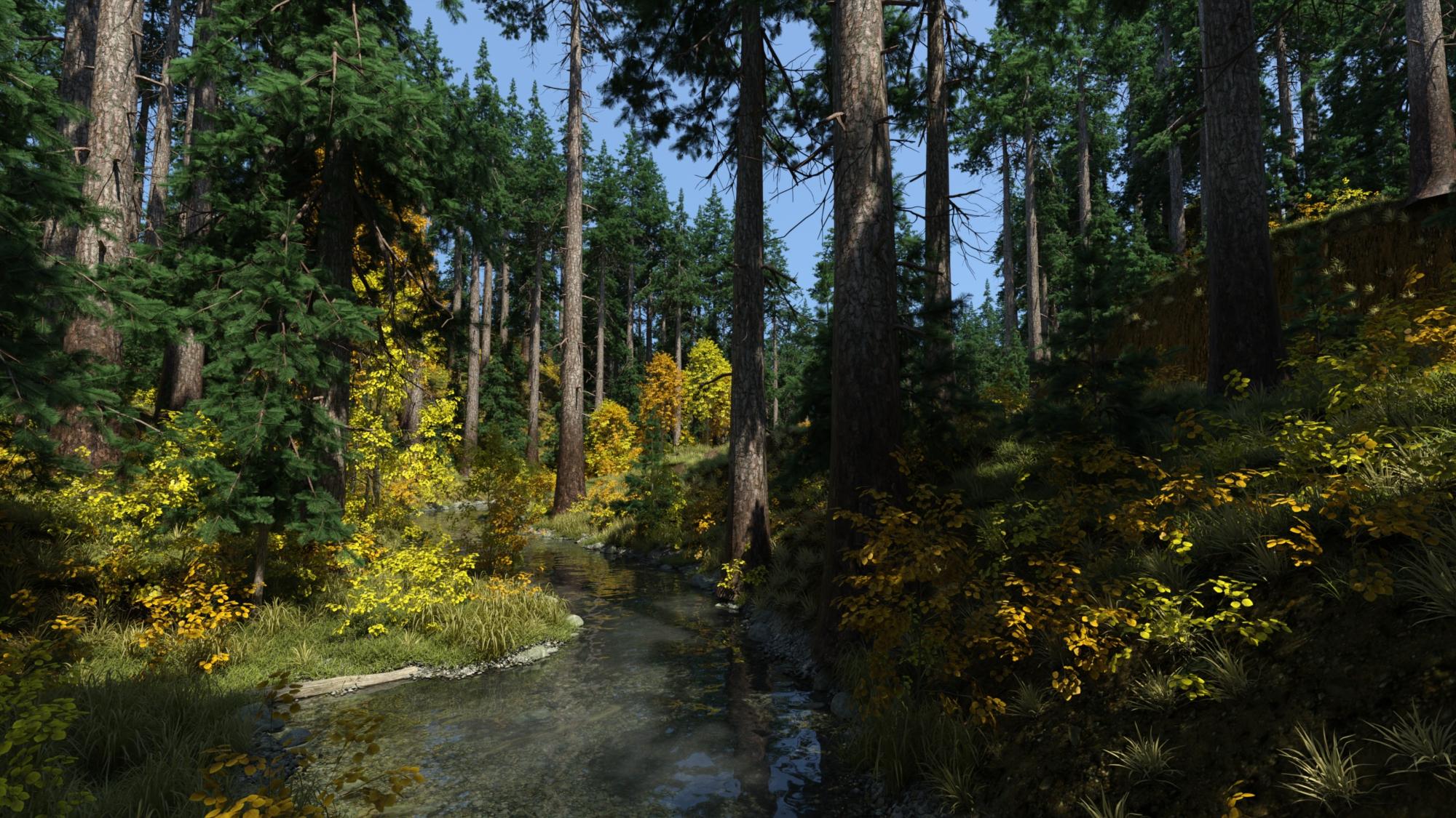 • Just played about with US, Pines with Aspen's. Used US props, instanced, to create the dam. Then on the near side I created a second US water plane and lifted it up by 20cm or so to simulate the stream being dammed. Then moved the water planes so their edges met in the dam, preventing two water planes anywhere.