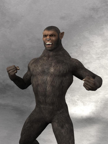 The first pair of images show (left) BeastMan with basic hair and (right) with full LAMH preset, with identical pose and lights for comparison. The third is a quick closeup. In each case the lights are one Advanced Ambient and one Advanced Spotlight aimed from above and to his right with fairly soft shadows.